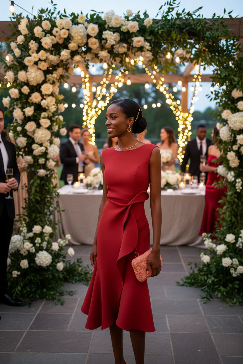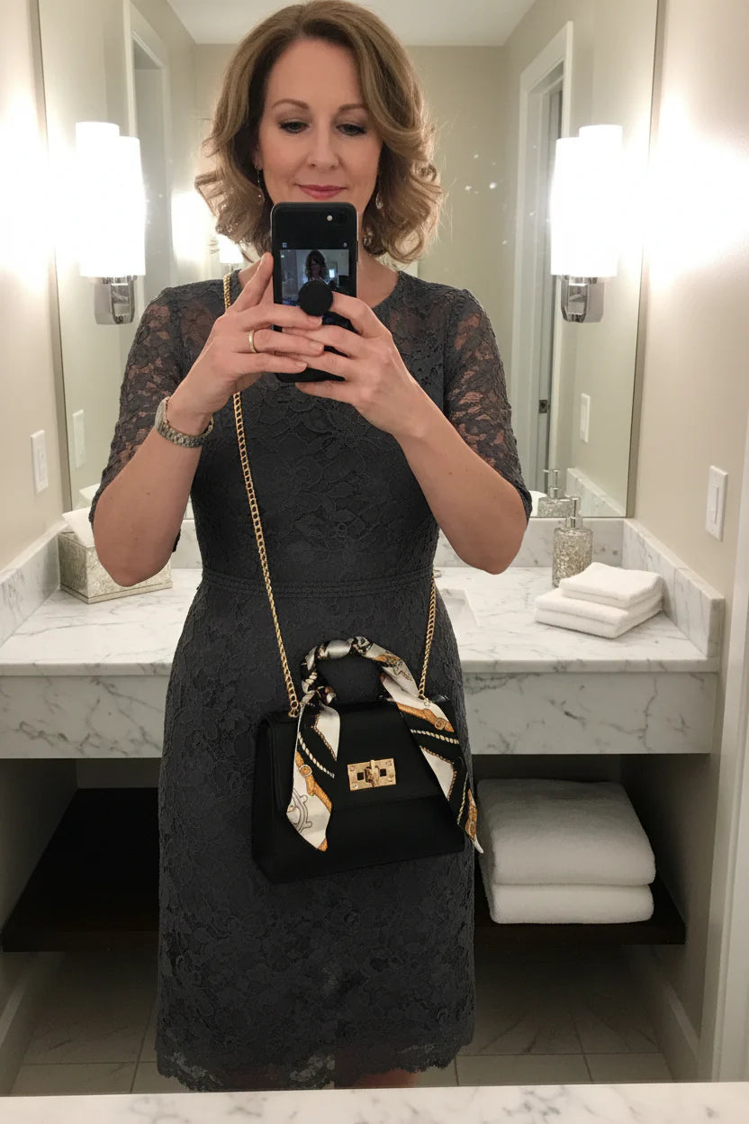 I wore this to my son’s wedding and felt gorgeous! The lace detail is elegant and it’s lined so it isn’t see-through. The fit is forgiving and comfortable all night. The bag is also by Moralea!