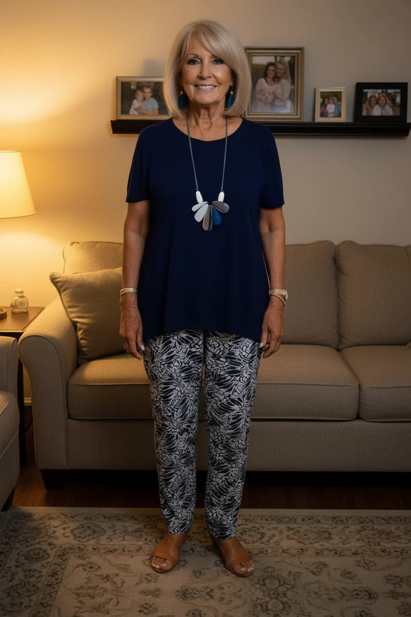 Love coordinating separates like this! The top is flattering and the trousers are so comfortable. Got multiple compliments from friends at our book club!